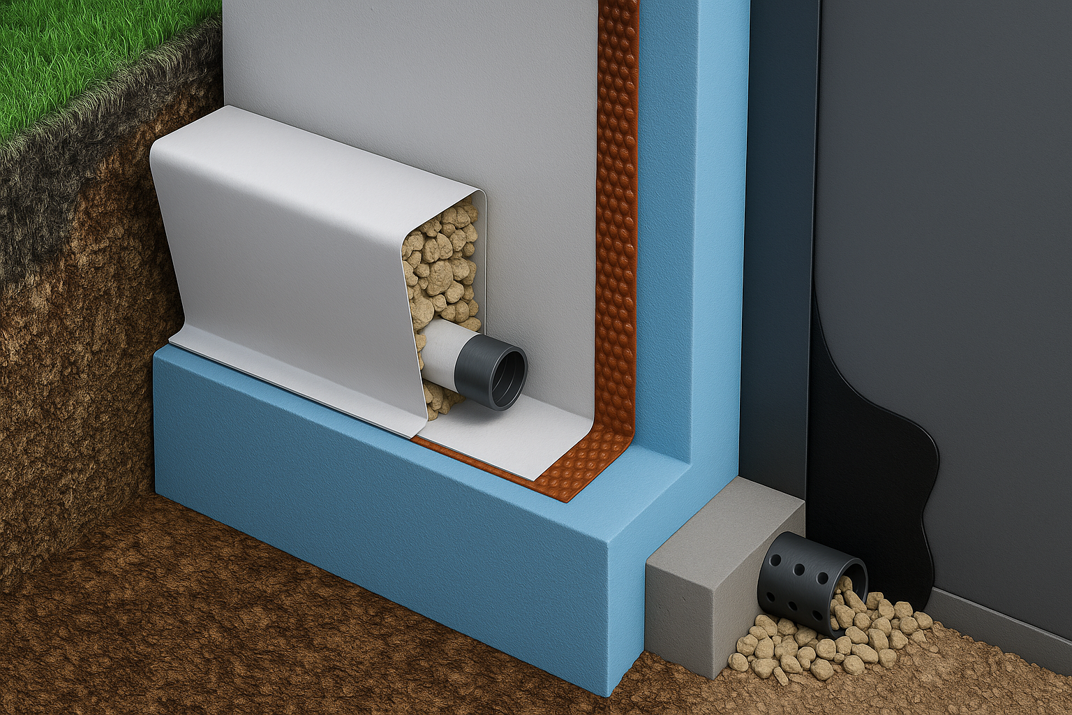 - Muros enterrados: protege la impermeabilización y facilita drenaje efectivo.